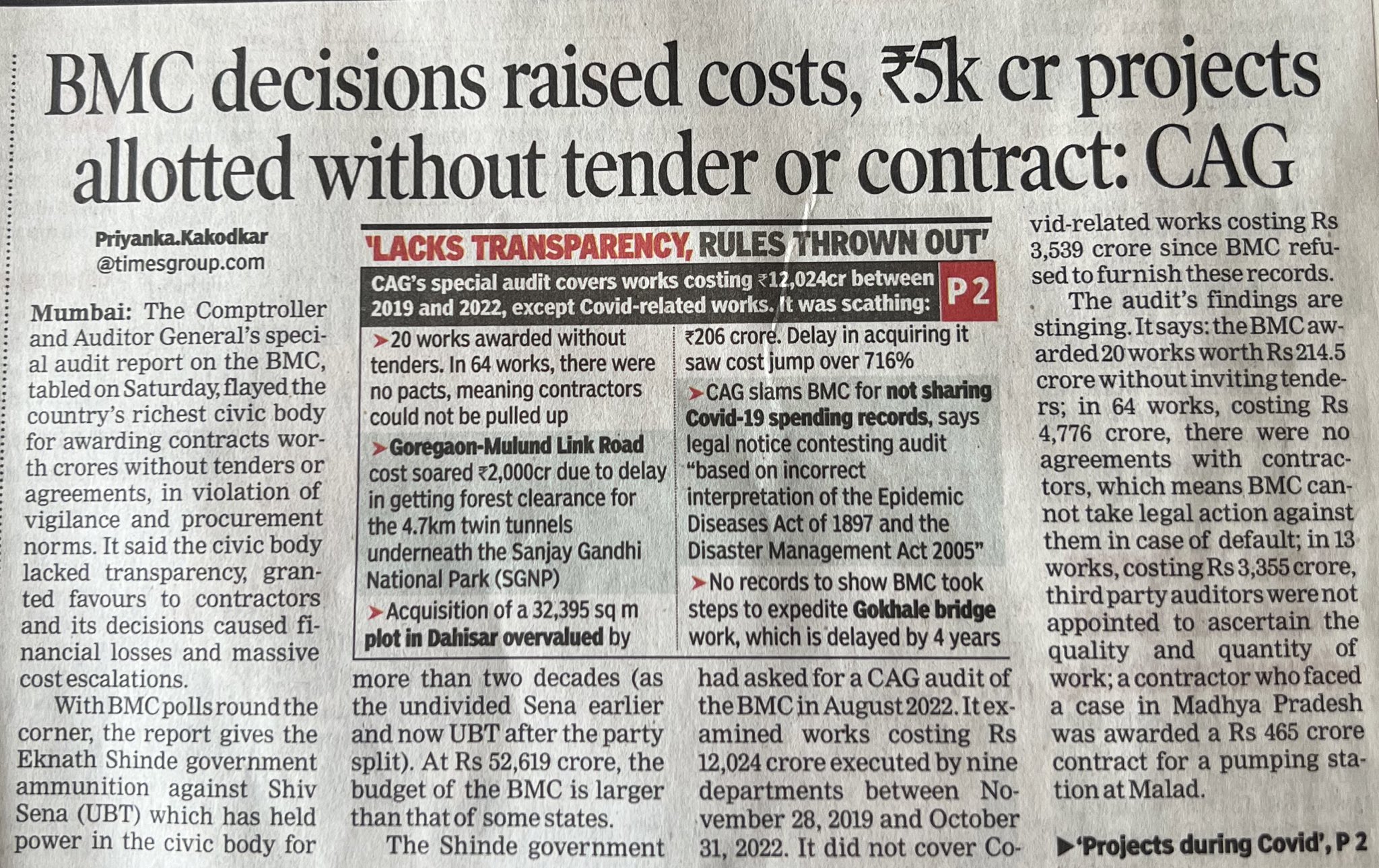 बीएमसीतील १२ हजार कोटींच्या कामांवर कॅगचा घाव : एका परिवाराच्या छत्रछायेखाली फोफावलेला गैरकारभार उघड!
